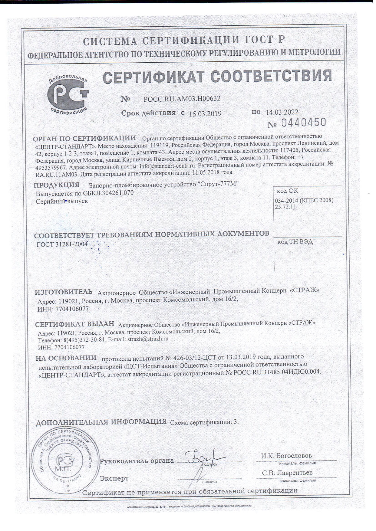 СЕРТИФИКАТ СООТВЕТСТВИЯ